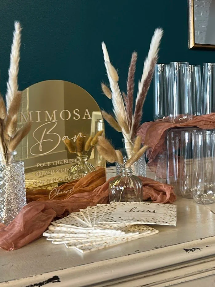 Decor Collection Includes: Table Runners (assorted colors) Vases Candleholders +LED candles Backdrop Stands Easel Serving Pieces Glass Drink Dispensers (2) Ice Bins